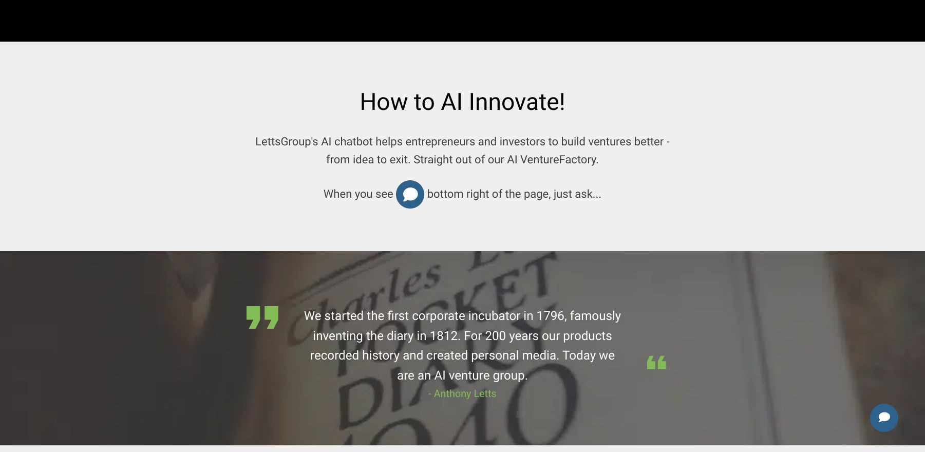 Already used by its own branded ventures, this AI VentureFactory is now available to co-pilot other technology-driven startups, scale-ups, venture capital firms and corporate venture groups. It has been initially launched in limited release to select 3rd party ventures. So don’t hang around if you’re interested - jog over to LettsGroup.