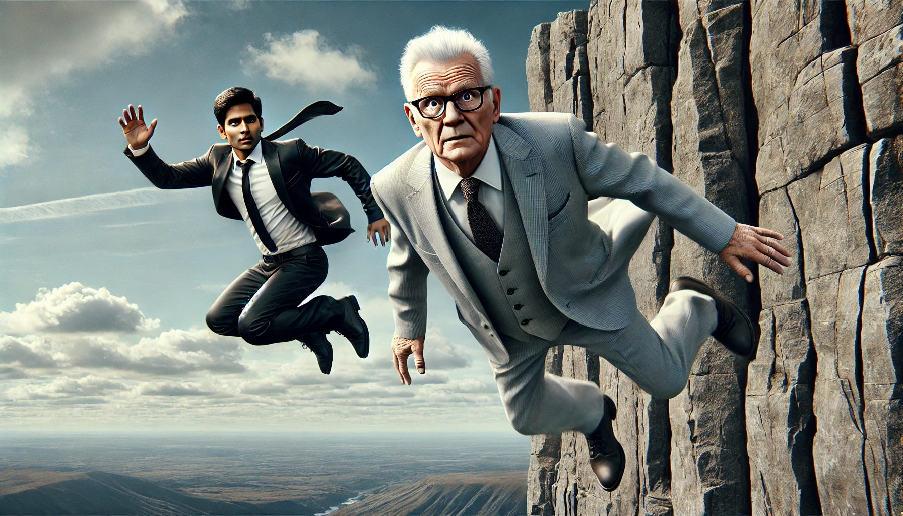Cartoon: The 2 British leaders base jumped off a Dover cliff together!!! They ended their campaigns waving to sailboats and migrant dinghies.