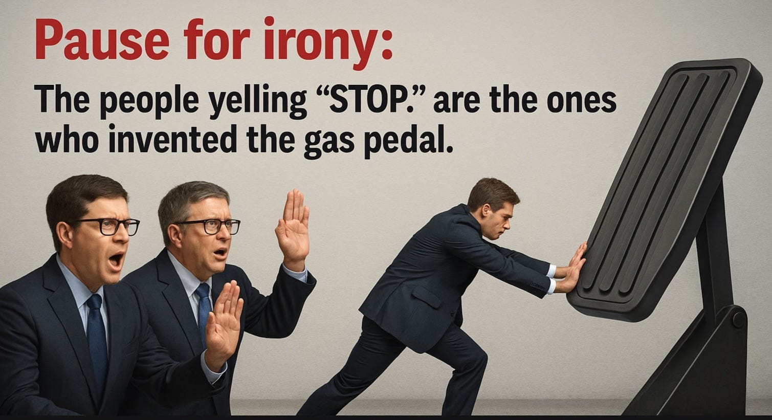 Back to that extinction letter. It framed AI as a civilization-ending threat. A statement now quoted like scripture in both policy memos and late-night podcasts. But what if it wasn’t just alarm? What if it was strategy?