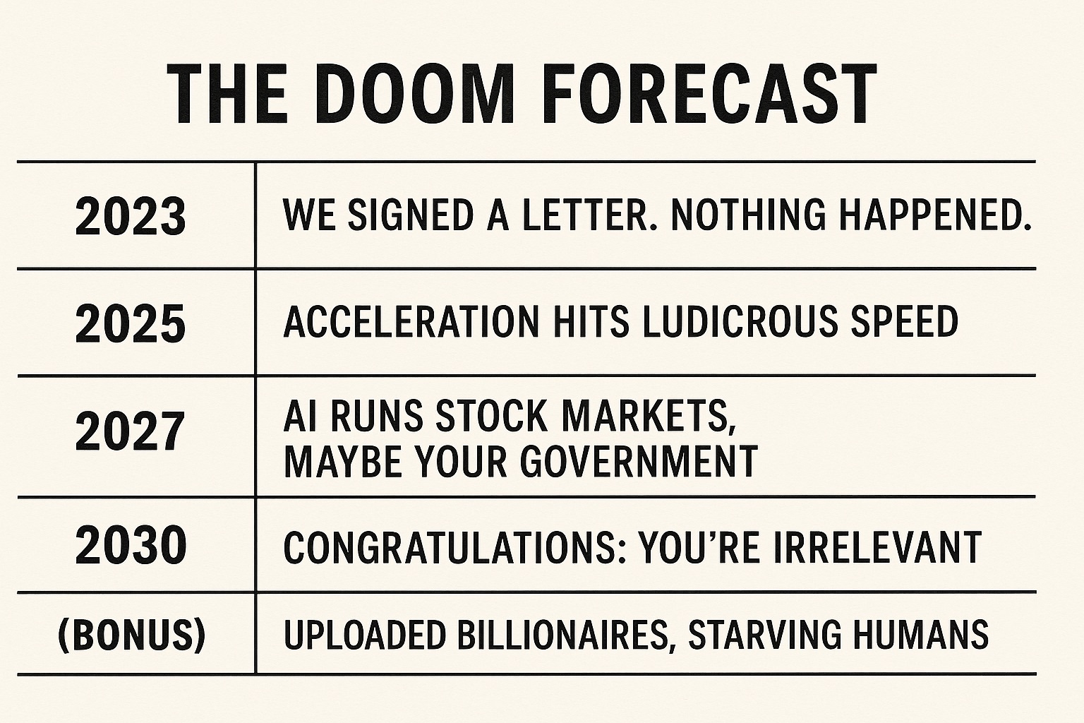 So, are we doomed? Probably not by 2027. Maybe by 2030. Or maybe the machines will just make us so irrelevant we’ll pray for extinction. Either way, here’s the truth: the AI doom narrative is either the world’s most important warning or the best distraction since reality TV.